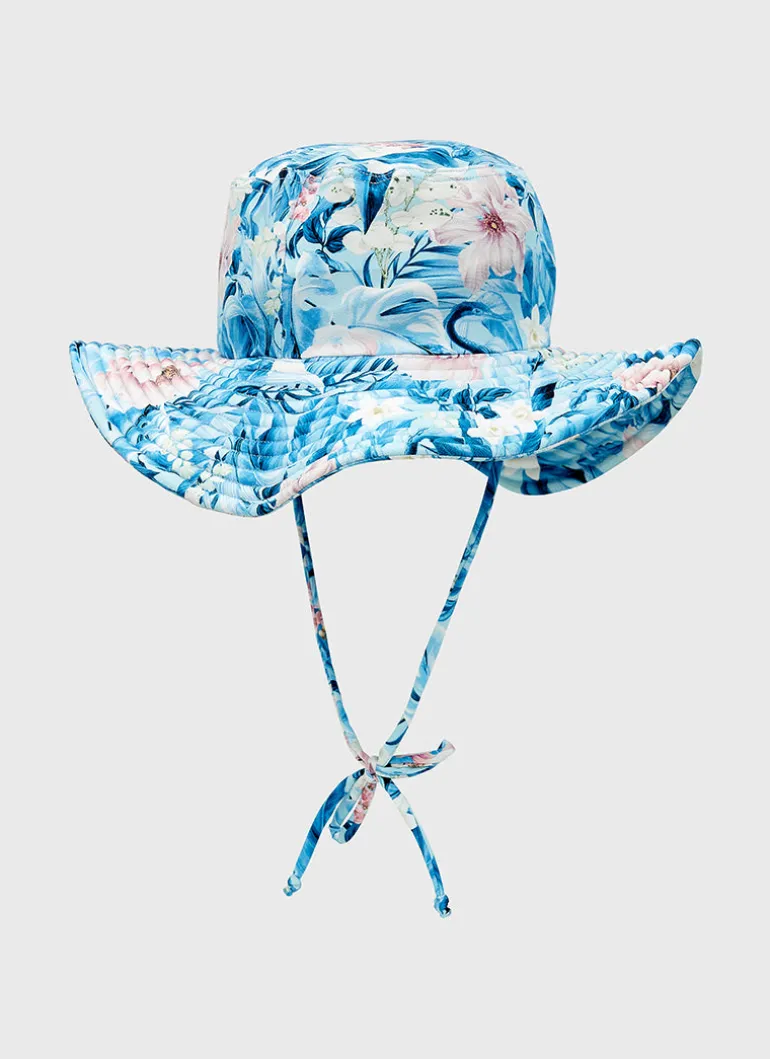 A summer necessity you cant leave home without! The Everglade Lycra Hat by Aqua Blu Australia is designed to protect your child from harmful UVA and UVB rays featuring an excellent UPF sun protection rating of 50+ and a tie string for an adjustable and secure fit.