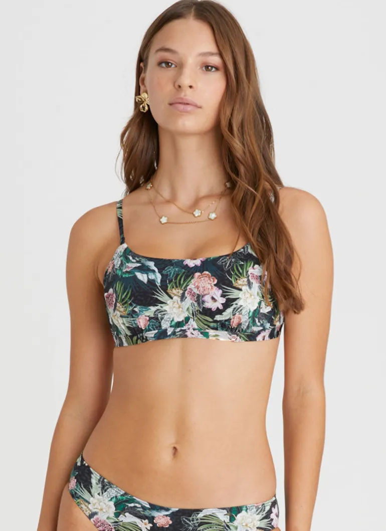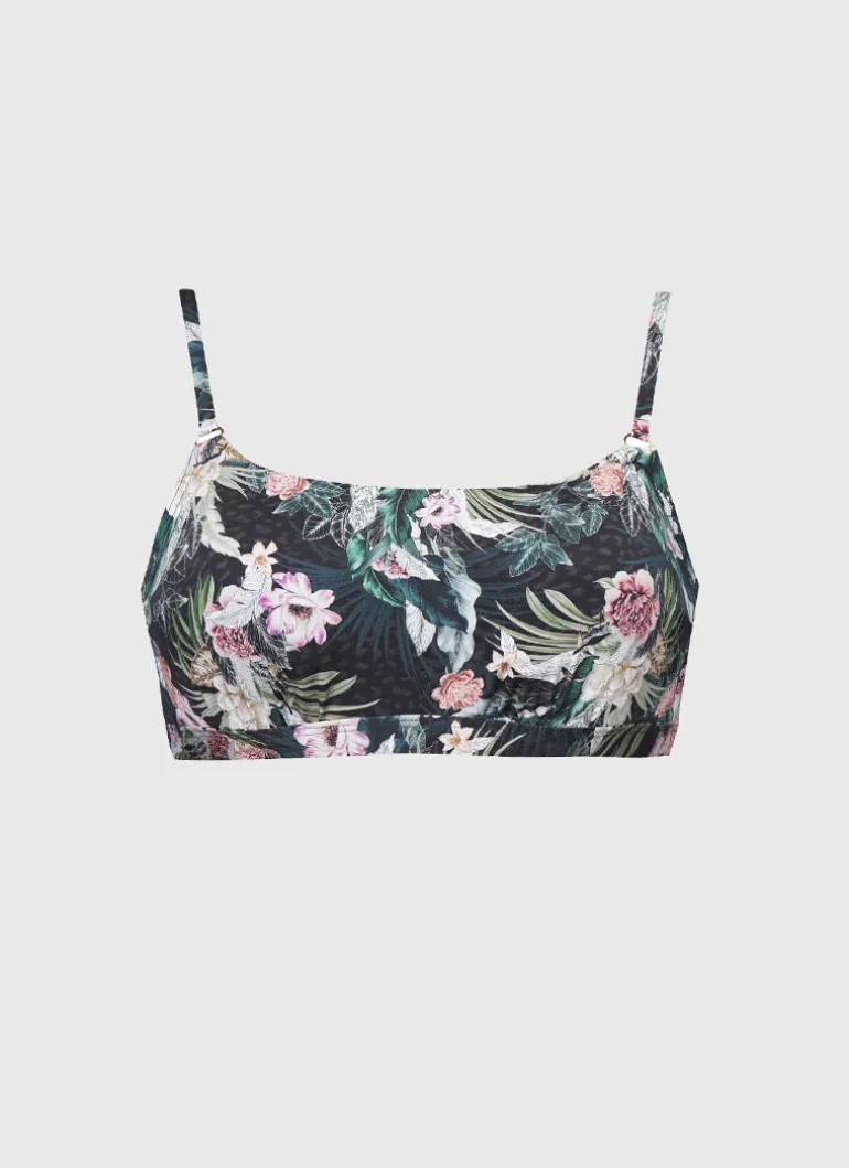 The Lisanthus Iris D/DD Cup Top is an elevated piece featuring underwire support, tie back and removable cups for added support and comfort. Perfect for a day at the beach or pool, this Aqua Blu Australia top embodies both comfort and style.