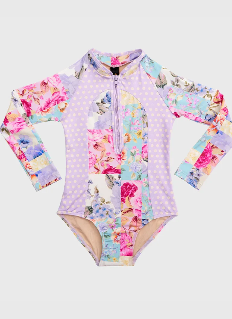 The Meadow Long Sleeve One Piece by Aqua Blu Australia is a must have this summer. Protecting your child from UVA and UVB rays, this one piece boasts a UPF Sun Protection Rating of 50+