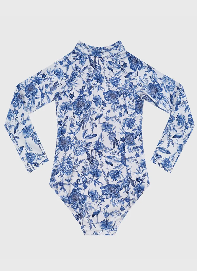 The Azalea Long Sleeve One Piece by Aqua Blu Australia features a UPF 50+ sun protection rating. It’s the perfect choice for your little ones to stay stylish and protected at the beach or pool.