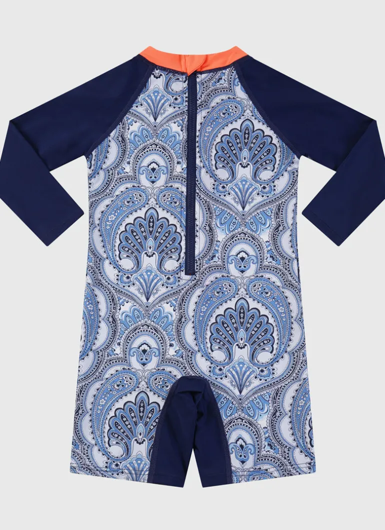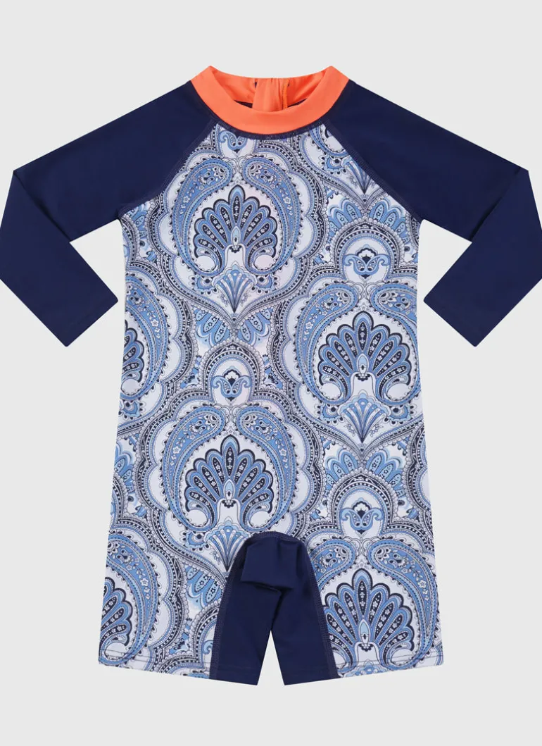 Protect your little one from the sun’s harmful rays with the stylish and functional Baroque Long Sleeve Sunsuit by Aqua Blu Australia. With a UPF 50+ Sun Protection Rating, the sunsuit offers maximum protection against UV radiation while your child enjoys playing in the sun.