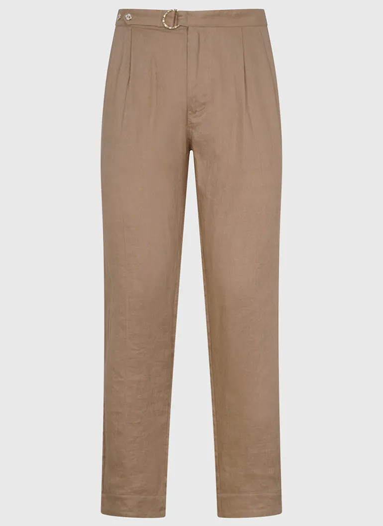The Caramel Jake Pants by Aqua Blu Australia exude sophisticated style and refined tailoring. Crafted with impeccable attention to detail, these pants feature pleat front detailing and a ring and button closure for an elevated look. The tailored fit and turned up hem add a modern touch making this piece a must-have addition to any discerning gentleman’s wardrobe.