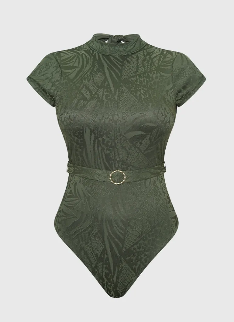 Step out in style with the Olive Adria One Piece by Aqua Blu Australia. Featuring removable cups and elastic shelf support, this piece offers customizable coverage and support. With a removable belt, butterfly slit cap sleeves and high neck design this piece exudes understated elegance and style. Whether lounging on the beach or enjoying a day by the pool, this one piece is the perfect choice for the fashion-conscious woman.