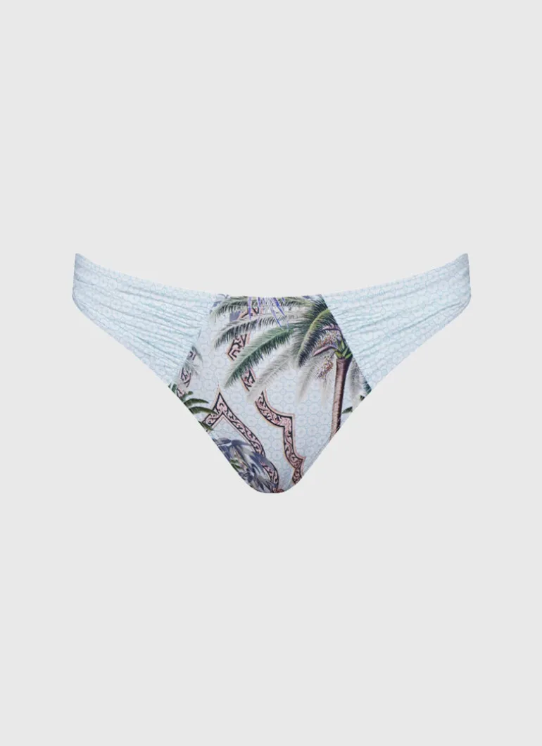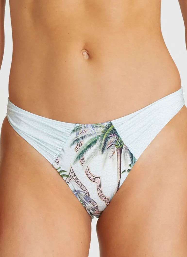 Introducing the Palmilla Mila Cheeky Pant by Aqua Blu Australia. Designed with gathered seam front panels and ruched detailing on the back, this piece offers a flattering and comfortable fit. The cheeky pant cut adds a touch of playfulness and is perfect for a day at the beach or by the pool.