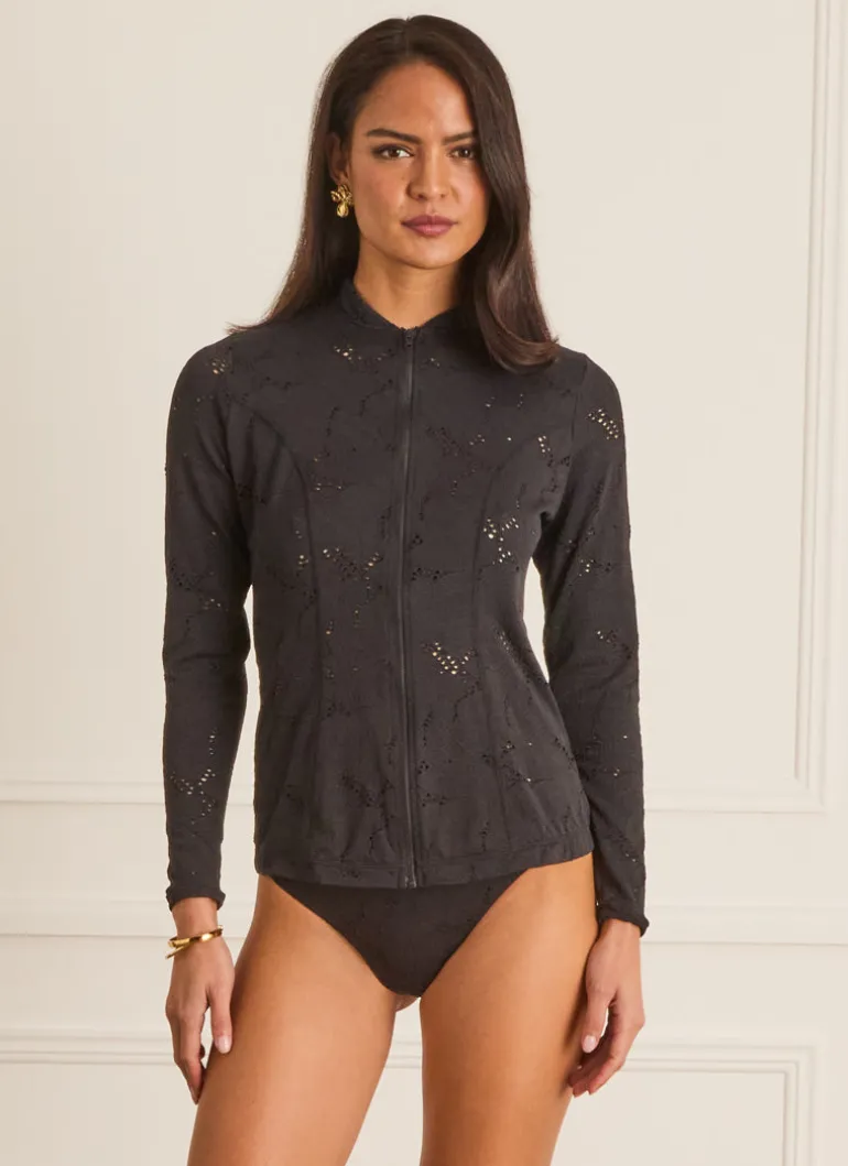Protect yourself in style with the Sparrow Lyla Rash Guard by Aqua Blu Australia, the ultimate expression of functional swimwear. Featuring UPF 50+ sun protection, this piece offers maximum protection, while the classic collar and raglan sleeves provide additional coverage and support.
