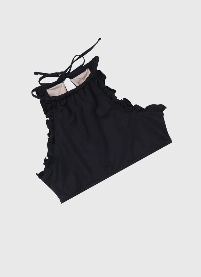 – Adjustable halter neck tie with frill detail and faux tie side pants