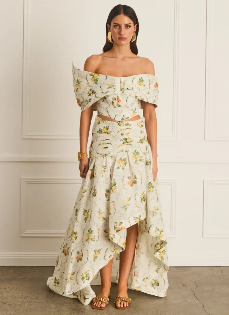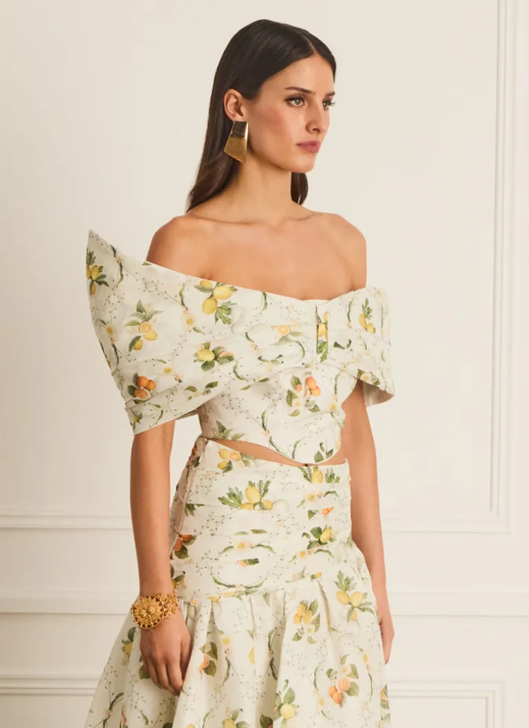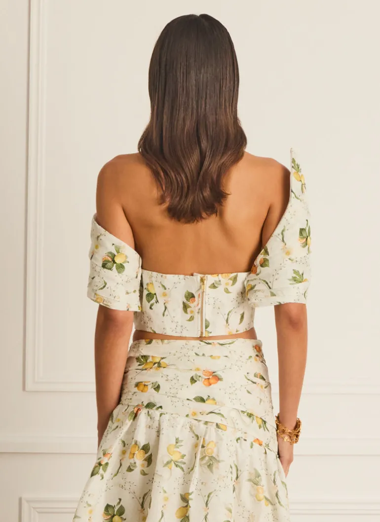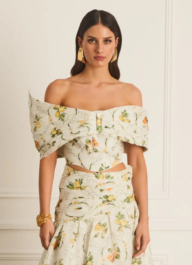 The Valencia Robin Corset by Aqua Blu Australia is a captivating architectural design. This corset-style crop top exudes sophistication with its sleek silhouette and curved hemline, adding a touch of modern elegance to any ensemble. Accentuated by an asymmetrical bow detail, it embodies playful sophistication.
